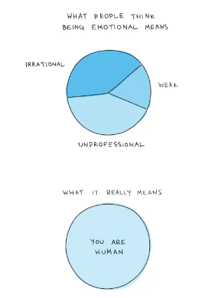 ผู้ชายก็ฝึกการแสดงอารมณ์ได้เช่นกัน อันที่จริงอาจจะต้องฝึกมากกว่าผู้หญิง เพราะเวลาเจอปัญหา สมองผู้ชายมีแนวโน้มที่จะสกัดกั้นปัจจัยด้านอารมณ์ออกไป จนเหลือแค่เหตุผลเพียว ๆ และนี่อาจทำให้เพื่อนร่วมทีมหรือลูกน้องรู้สึก lost ว่าเจ้านายไม่ซัพพอร์ตด้านอารมณ์เลย