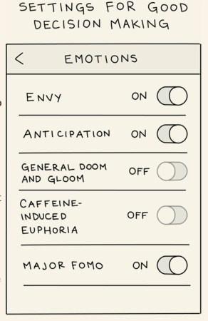 อันที่จริง การนำอารมณ์มาช่วยตัดสินใจก็ไม่ได้แย่ซะเดียว เพราะอารมณ์นั้นก็ไม่ได้โผล่มาแบบแรนดอม ๆ ไร้แก่นสาร แต่มันเกิดจากประสบการณ์ ความเชี่ยวชาญ และข้อมูลที่เราได้รับ สั่งสม ๆ กันมา มองเผิน ๆ ก็เหมือนสัญชาตญาณนั่นแหละ ซึ่งการที่เรารู้ทันสัญญาณพวกนี้ ก็จะช่วยจำกัดตัวเลือกของเรา ให้เราตัดสินใจได้ง่ายขึ้น