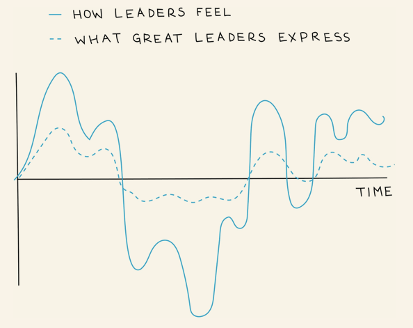 ลองคิดว่าถ้า CEO บริษัทบอกกับลูกน้องทุกคนว่า “ฉันกลัวมาก ฉันกังวล ไม่รู้จะทำยังไงต่อดี” โอเคว่านี่เป็นการแสดงความรู้สึกก็จริง แต่แทนที่มันจะเป็นประโยชน์ มันกลับยิ่งทำให้เหล่าพนักงานรู้สึกกระวนกระวาย ขนาด CEO ยังกังวลขนาดนี้ เหล่าพนักงานคงยิ่งร้อนใจ เตรียมหางานใหม่แน่นอน