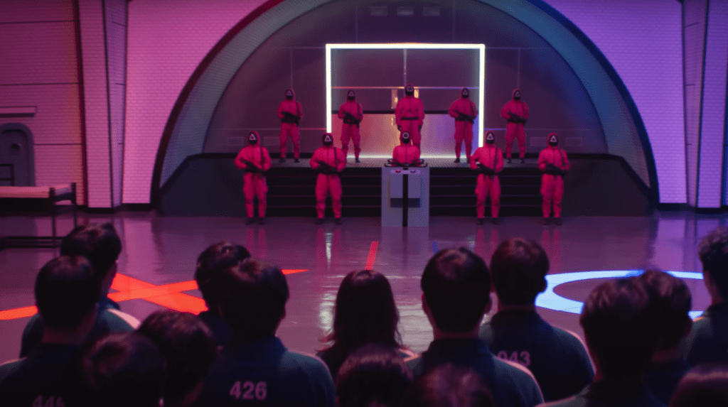 - กีฮุนโดนทหารจับไประหว่างดำเนินภารกิจบุกรังผู้ควบคุมเกม จงเบที่ไปด้วยกันโดนฆ่าตาย เกมมาสเตอร์หรือหมายเลข 001 หักหลังผู้เล่นแล้วกลับไปสวมหน้ากากอีกครั้ง